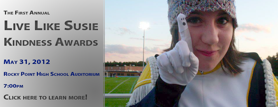 We are very proud to present the second annual Live Like Susie Kindness Awards, brought to Rocky Point High School by the Be a Nicer Neighbor Club!